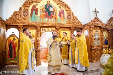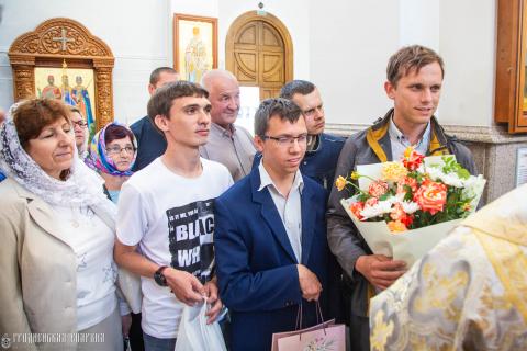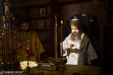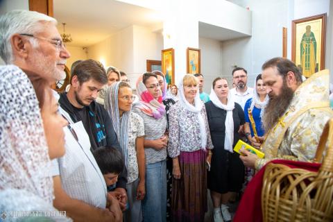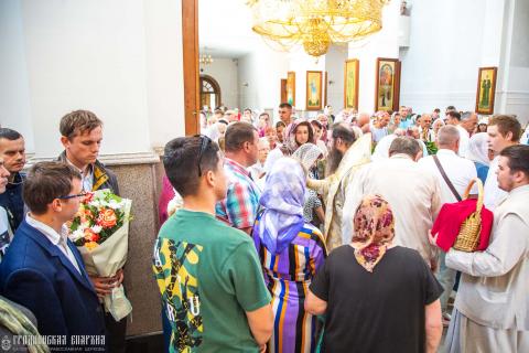 По окончании Божественной литургии правящий архиерей обратился к собравшимся с архипастырским словом и поздравил прихожанам, праздновавших свои дни рождения, вручив просфору и шоколад.