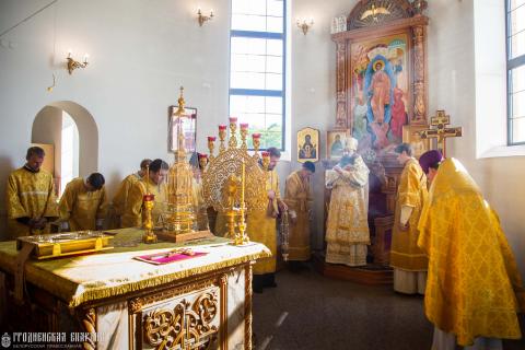 17 августа, в Неделю десятую по Пятидесятнице, Божественную литургию в нашем храме возглавил архиепископ Гродненский и Волковысский Антоний. Его Высокопреосвященству сослужили: преподаватель Минской духовной семинарии архимандрит Никодим (Генералов), настоятель прихода храма кафедрального собора Покрова Пресвятой Богородицы г.Гродно протоиерей Григорий Беляцкий, ключарь Архиерейского подворья иерей Евгений Коваль и клирик подворья иерей Александр Дьяченко.