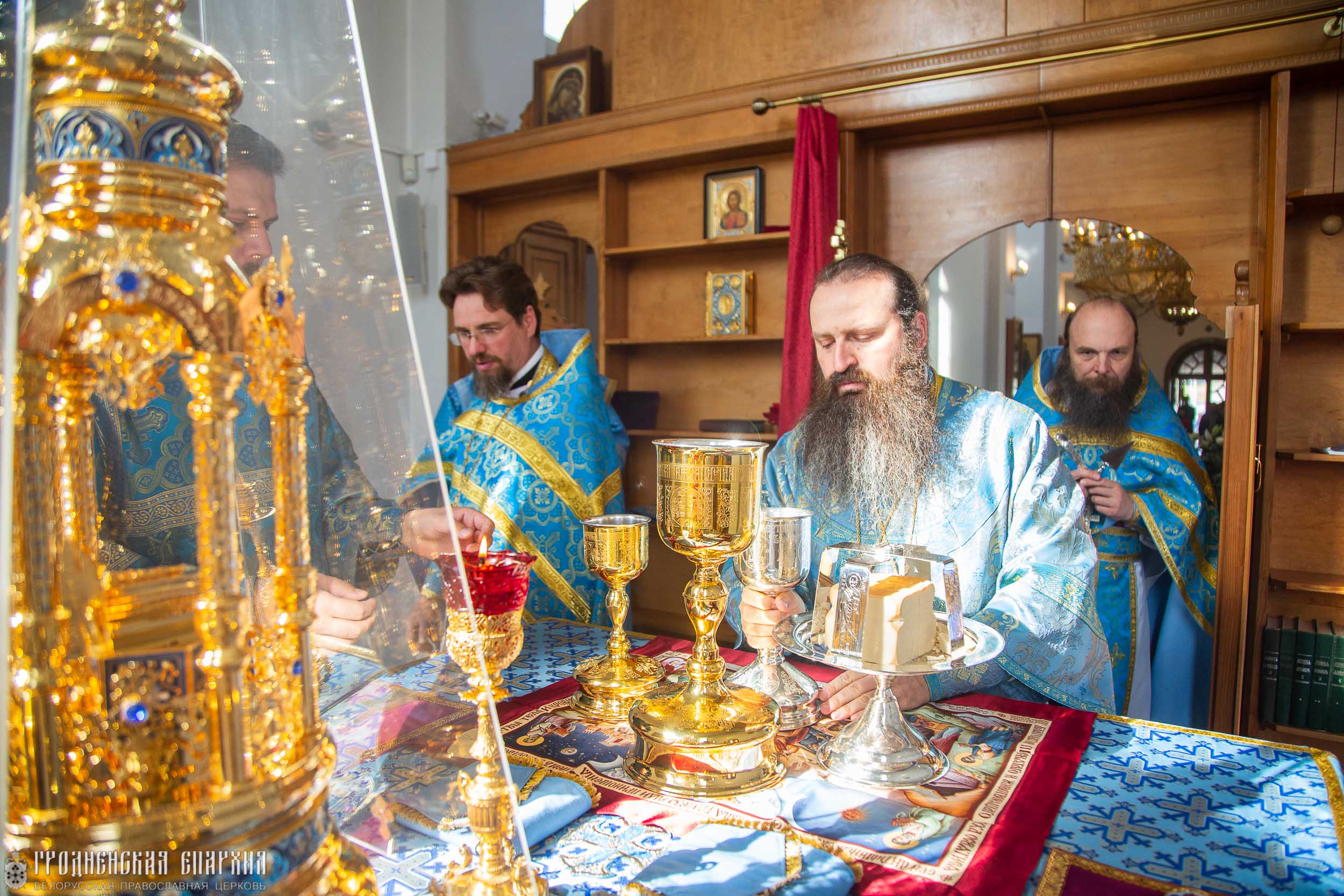 28 августа, в праздник Успения Пресвятой Владычицы нашей Богородицы и Приснодевы Марии, Божественную литургию в нашем храме возглавил архиепископ Гродненский и Волковысский Антоний. Его Высокопреосвященству сослужили: ключарь Архиерейского подворья иерей Евгений Коваль и клирик подворья иеромонах Афанасий (Анищик).