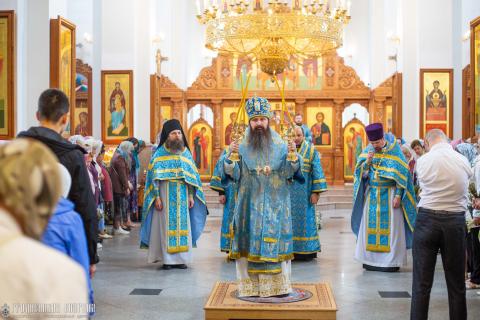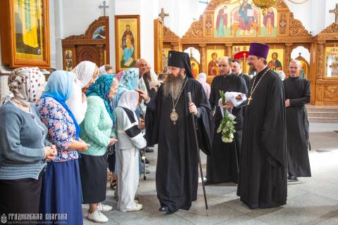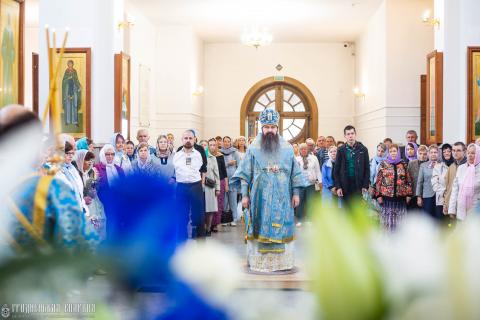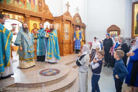 Во время богослужения была вознесена молитва о восстановлении мира. По отпусте Божественной литургии архиепископ Антоний совершил славление празднику Успения Пресвятой Богородицы и освящения благовонных зелий. По окончании Божественной литургии правящий архиерей обратился к собравшимся с архипастырским словом и поздравил прихожан, праздновавших свои дни рождения, вручив просфору и цветы.
