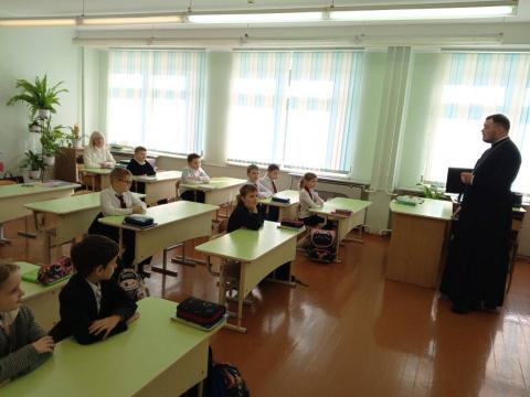 Также священник провел урок во 2 «В» классе. Он рассказал о празднике Покрова Пресвятой Богородицы и о том, что в нашей стране в этот день отмечается День матери. Он напомнил ребятам, что мамы, как и Пресвятая Богородица, всегда заботятся о своих детях, любят их и оберегают. Отец Александр призвал второклассников говорить своим мамам добрые слова, помогать им и быть послушными.