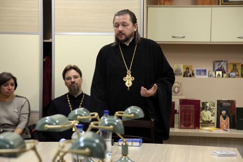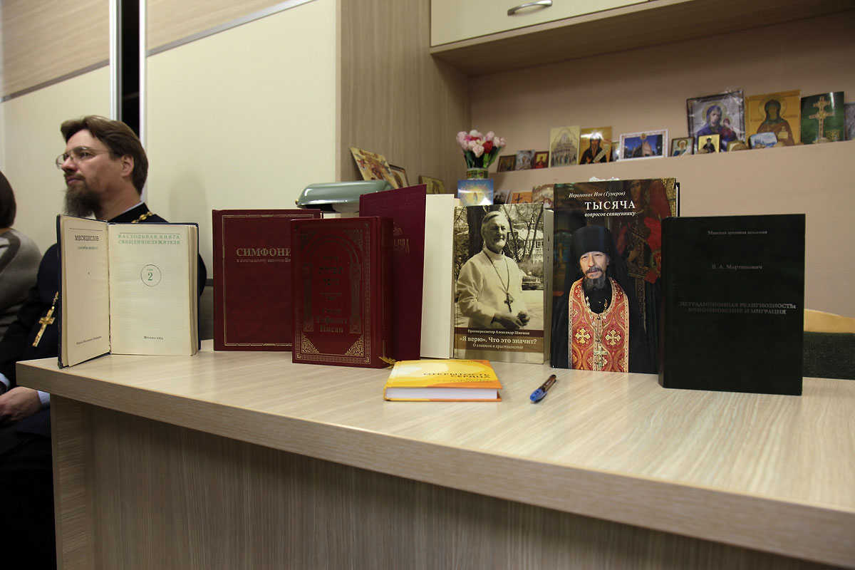 Отец Александр поделился с собравшимися своим личным духовным и читательским опытом, рассказав о тех авторах и книгах, которые оказали решающее влияние на формирование его как личности и священника, заложили фундамент его православного мировоззрения.