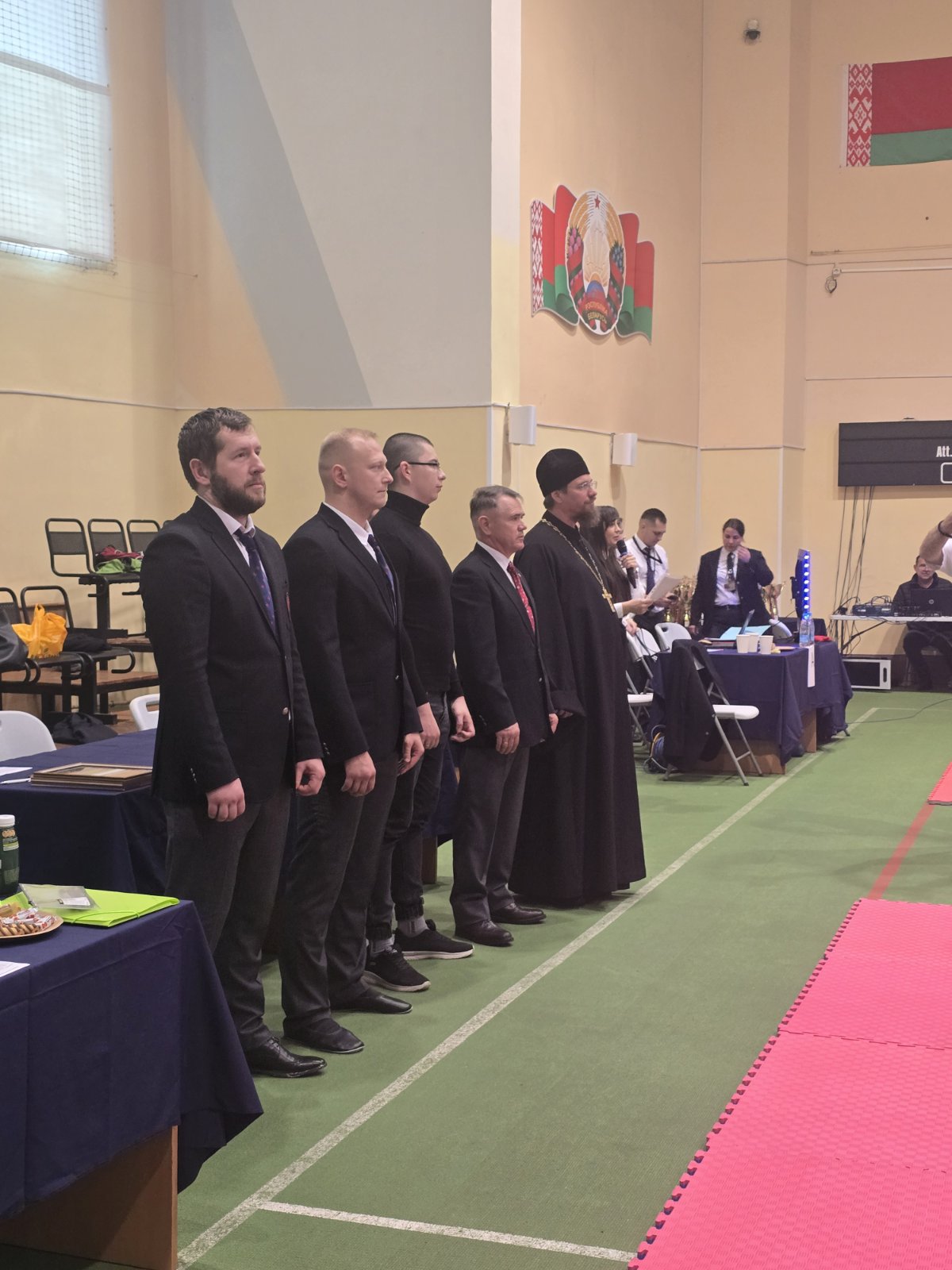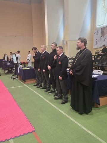 Отец Евгений передал участникам и организаторам турнира благословение на это благое начинание. Подчеркнув, что любое доброе дело, особенно направленное на помощь детям, должно начинаться с обращения к Богу, священник призвал всех к совместной молитве. По его приглашению зал торжественно пропел предначинательную молитву «Царю Небесный», испрашивая у Господа благословения на предстоящие труды.