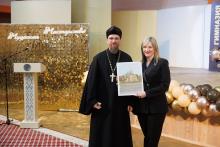 Также в дар гимназии и ее директору отец Евгений передал на память изображение Архиерейского подворья Собора Белорусских святых – нашего храма, как символ духовной связи и доброго сотрудничества между Церковью и школой.