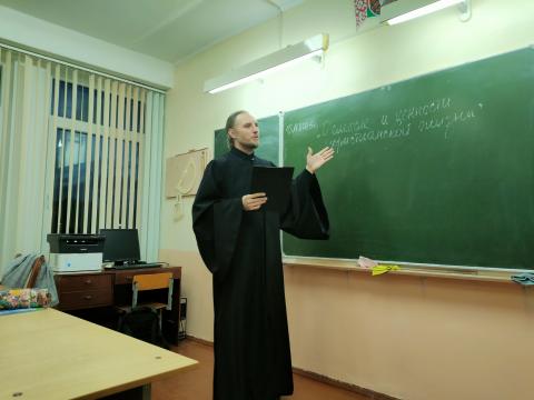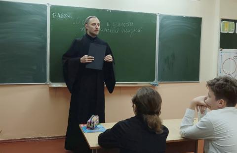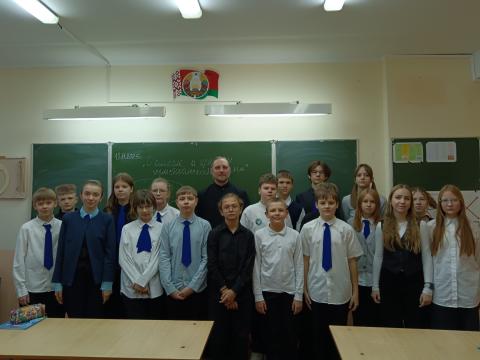 18 ноября клирик нашего прихода диакон Сергий Пучёк в рамках годового плана сотрудничества учреждения образования с приходом посетил гимназию №9 им. Ф.П. Кириченко и провёл беседу с учащимися 7 "В" класса на тему «О смысле и ценности христианской жизни».