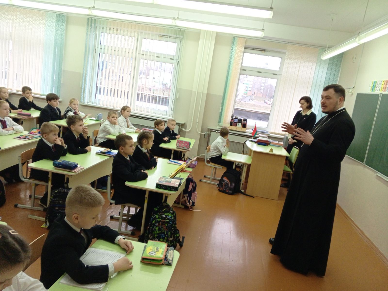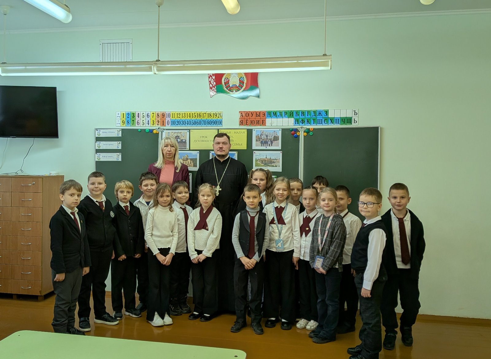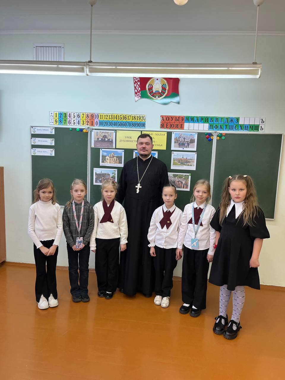 20 ноября в средней школе № 38 имени Кирилла Туровского г. Гродно клирик прихода нашего храма иерей Александр Дьяченко провел уроки на тему «Семья – это малая Церковь» для учащихся 2 «А» и 2 «В» классов.