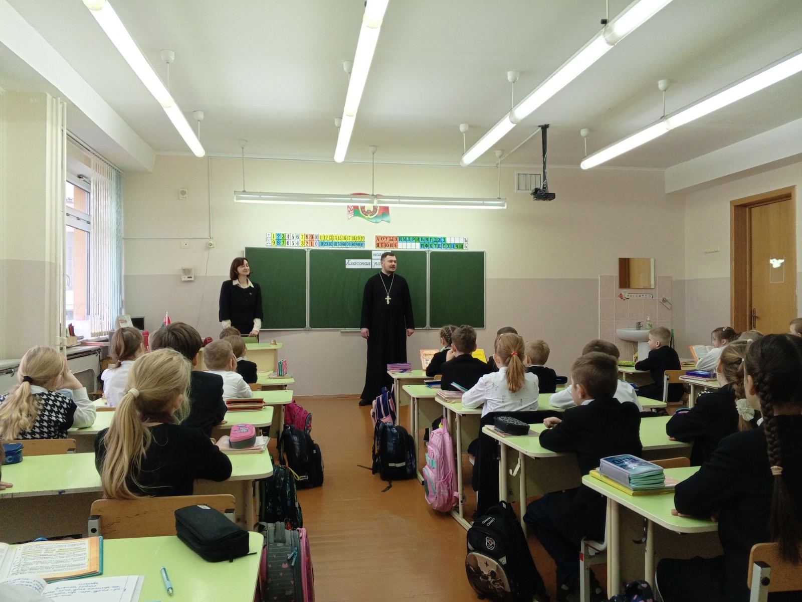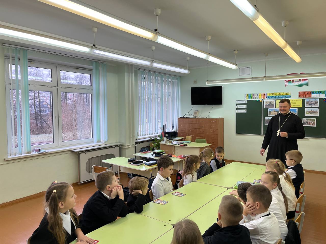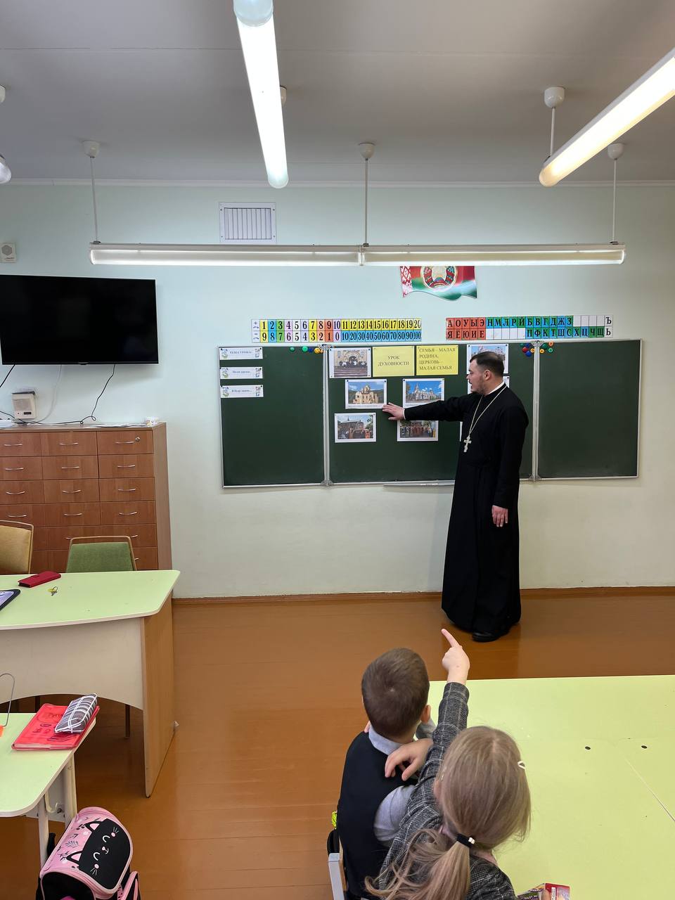 20 ноября в средней школе № 38 имени Кирилла Туровского г. Гродно клирик прихода нашего храма иерей Александр Дьяченко провел уроки на тему «Семья – это малая Церковь» для учащихся 2 «А» и 2 «В» классов.