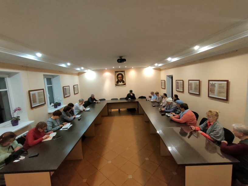 27 ноября состоялась очередная "Библейская встреча" (курс "Священное Писание Нового Завета"). Иеромонах Афанасий (Анищик) рассказал слушателям о содержании 9-й беседы свт. Иоанна Златоуста на Деяния святых апостолов. В данной беседе святитель толкует отрывок из Деян. 3: 12-26.