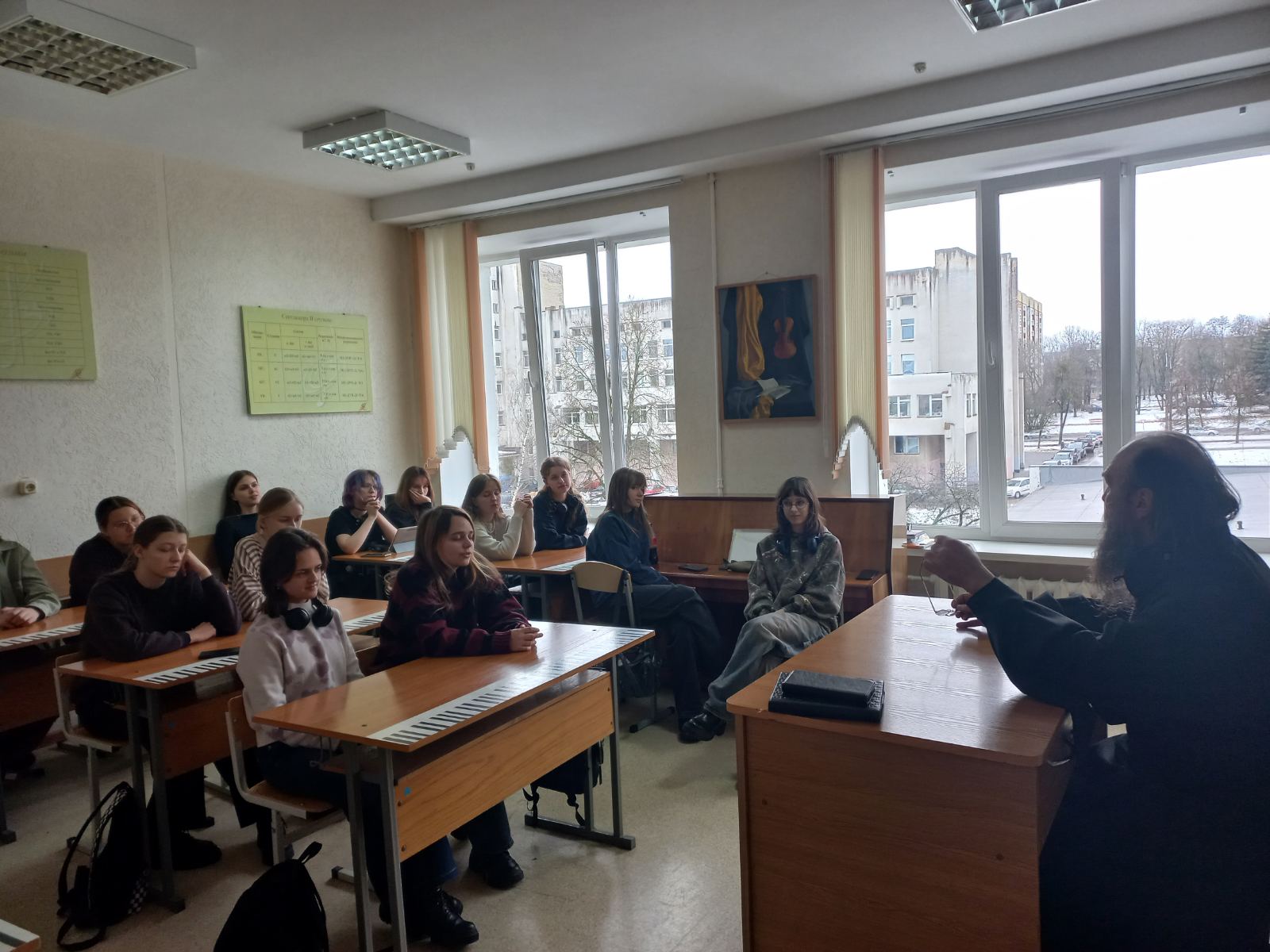 24 февраля иеромонах Афанасий (Анищик) посетил УО «Гродненский государственный колледж искусств», где провел встречу с учащимися специальности «Дизайн». Тема беседы – «Искусство гармоничной и счастливой жизни с Богом в современном мире» – нашла живой отклик у молодежи.