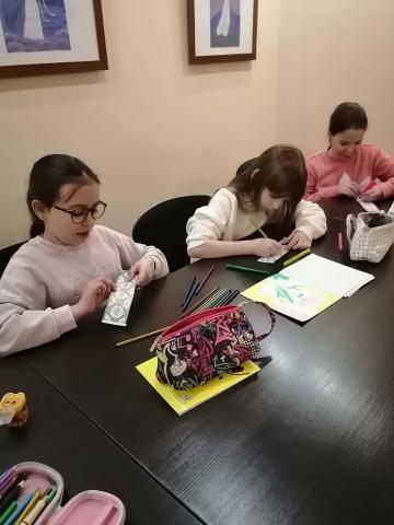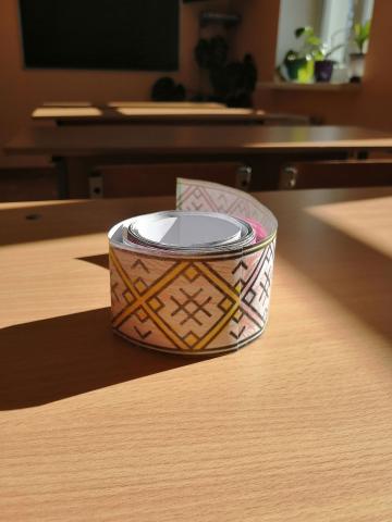 Далее в качестве рефлексии ребятам была предложена творческая работа, которая заключалась в раскрашивании фрагмента пояса. По её завершении все фрагменты были склеены в один длинный пояс, который символично напоминал о святыне, с которой познакомились и имели возможность приложиться.