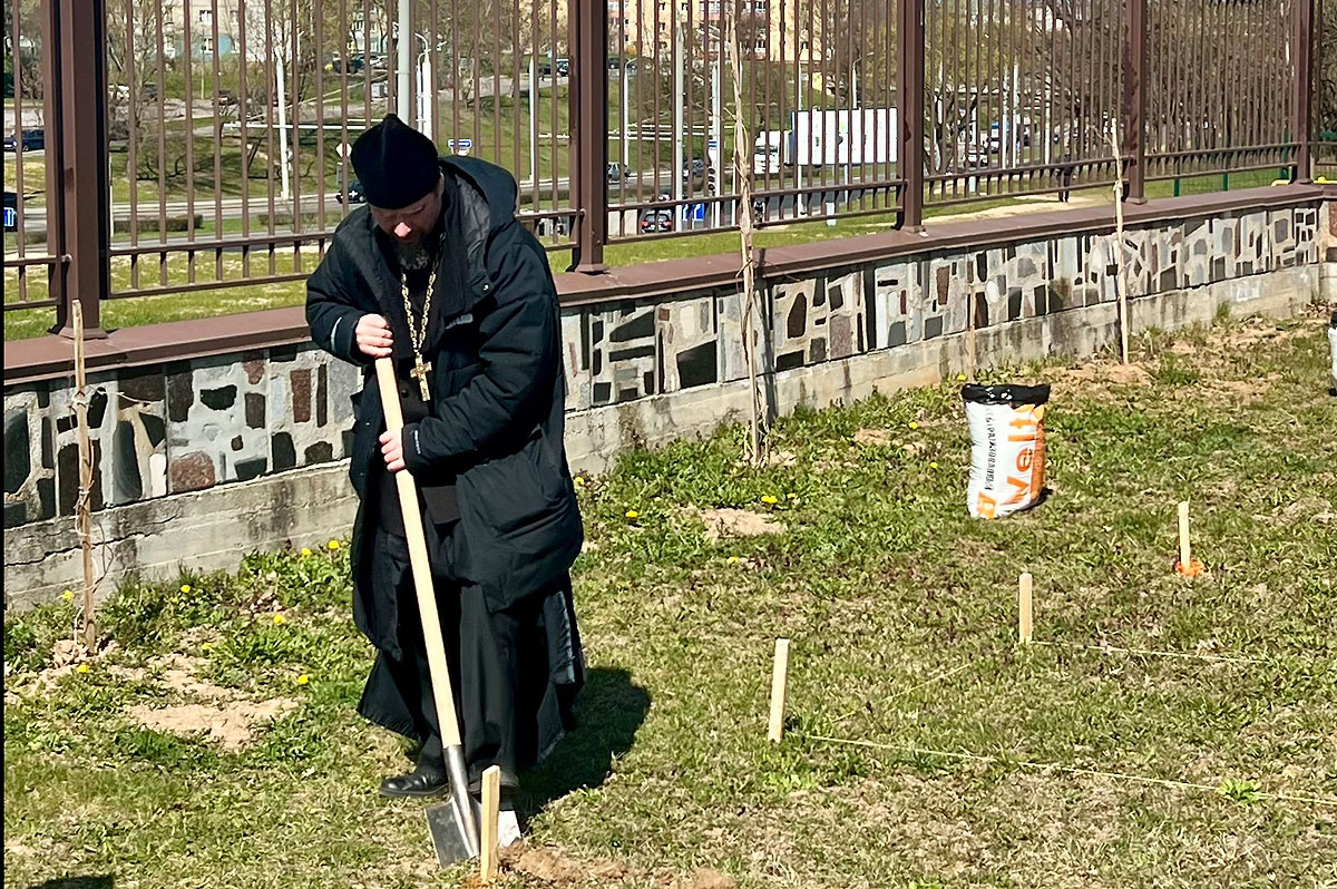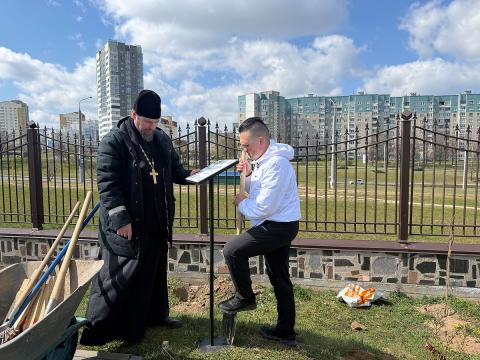 Иерей Евгений Коваль в своем слове отметил глубокую символику посаженных деревьев. Само слово «сирень» происходит от древнегреческого «σῦριγξ», что означает «трубочка», «дудочка». В новогреческом языке сирень именуется «πασχαλιά» - пасхальное дерево — деревом, расцветающим ко дню Пасхи.
