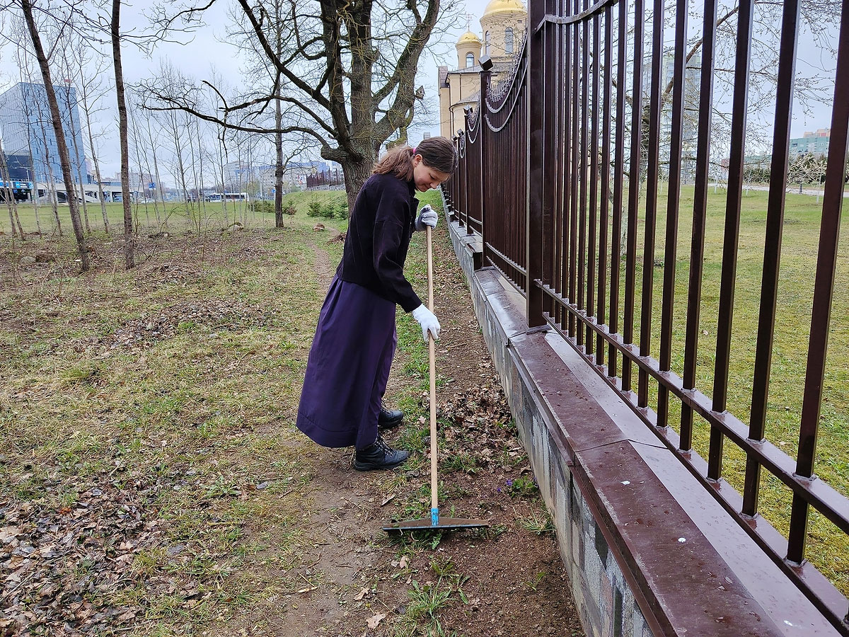 17 апреля, в пятницу Светлой седмицы, после Божественной литургии наши прихожане вышли на субботник, чтобы привести в порядок территорию вдоль церковного ограждения. Основная работа заключалась в уборке опавшей листвы и сухих веток.