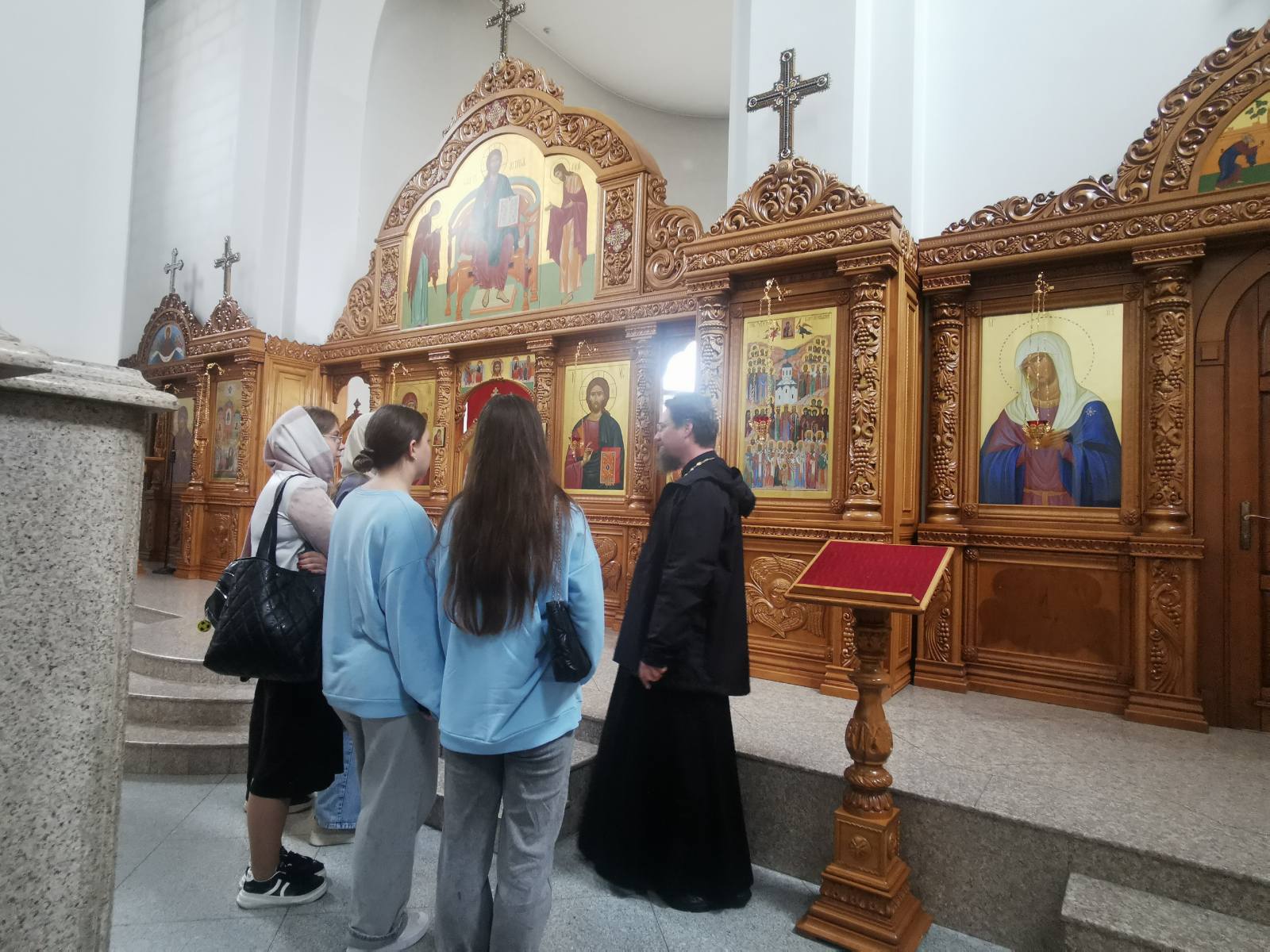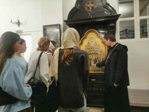 После содержательной беседы гости отправились на экскурсию по храму. Студенты и преподаватели смогли ближе познакомиться с историей прихода, его архитектурой, святынями и внутренним убранством. Встреча прошла в теплой и дружественной атмосфере.