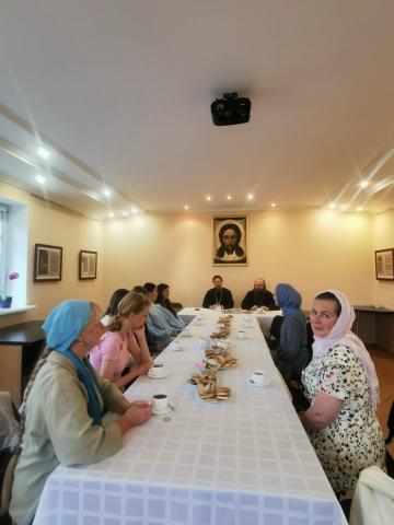 9 июля приход посетили студенты 2 курса и преподаватели кафедры русской филологии. Визит начался с теплого общения за чашкой чая. За душевной беседой, которую возглавили ключарь прихода иерей Евгений Коваль и клирик иеромонах Афанасий (Анищик), участники встречи обсудили важные вопросы семейных ценностей в современном мире, поделились своими мыслями и задали интересующие вопросы священнослужителям.