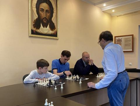 Почти два часа шла упорная шахматная борьба между гостем и нашими прихожанами. Показав высокий класс игры, мастер одержал победы на пяти досках. Лишь Владимиру Пыльскому удалось добиться почётной ничьей в напряжённой партии. Этот небольшой турнир стал не только интересным спортивным событием, но и прекрасным поводом для теплого общения.