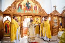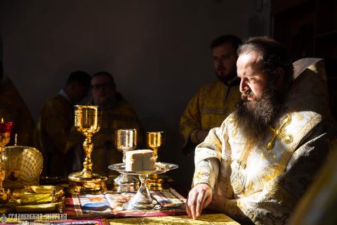 По окончании Божественной литургии правящий архиерей обратился к собравшимся с архипастырским словом и поздравил прихожанам, праздновавших свои дни рождения, вручив просфору и шоколад.
