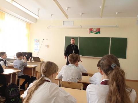 10 октября, в преддверии праздника Покрова Пресвятой Богородицы и Дня матери, клирик нашего прихода иерей Александр Дьяченко посетил среднюю школу № 38 имени Кирилла Туровского и провел встречу с учениками 6«Б» класса.
