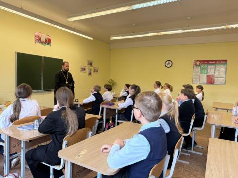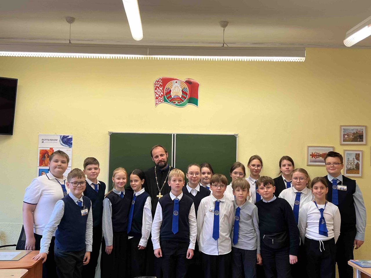 14 октября, в День матери и праздник Покрова Пресвятой Богородицы, священник храма иерей Илья Гапанович провел беседу с пятиклассниками ГУО «Гимназия №1 имени академика Е.Ф. Карского г. Гродно». Отец Илья познакомил ребят с историей церковного праздника, а центральной темой разговора стала любовь.