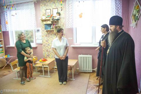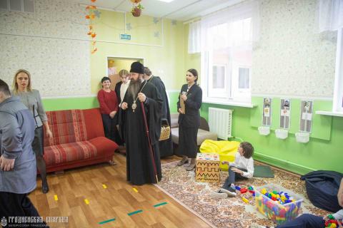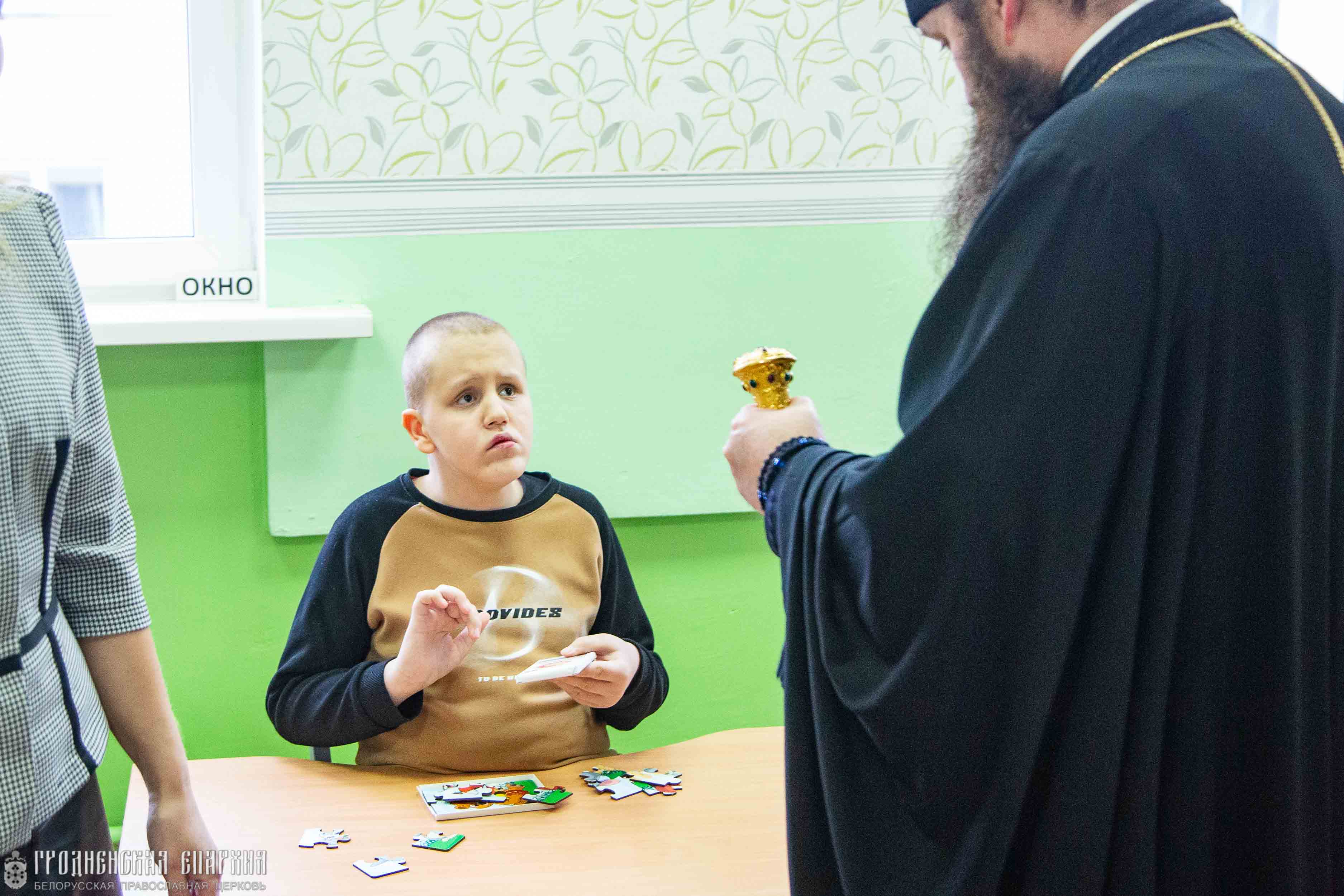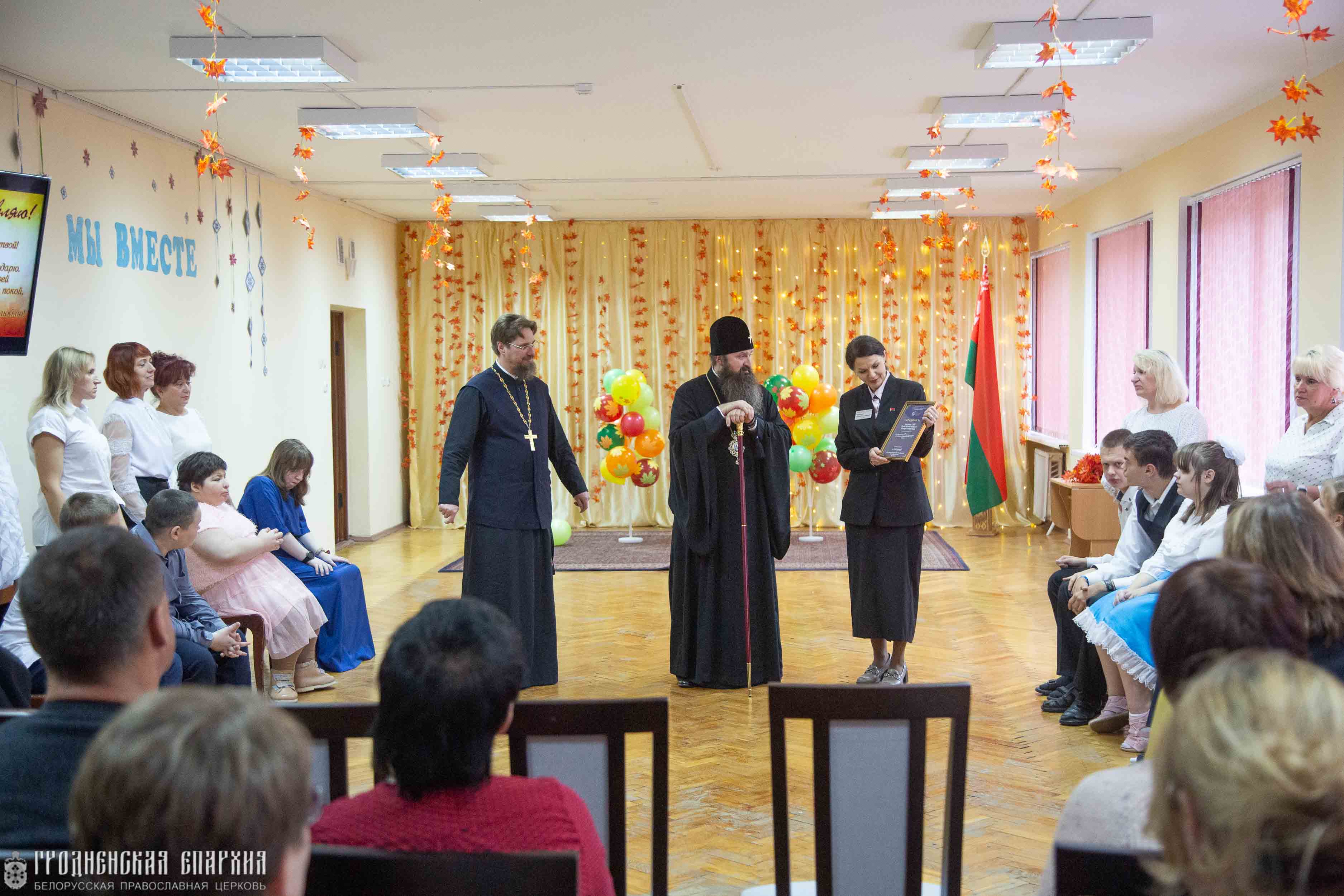 По завершении официальной части для владыки и гостей провели экскурсию по центру. От Гродненской епархии всем детям, родителям и педагогам были вручены сладкие подарки, а также передан сертификат на приобретение специального коррекционного оборудования.