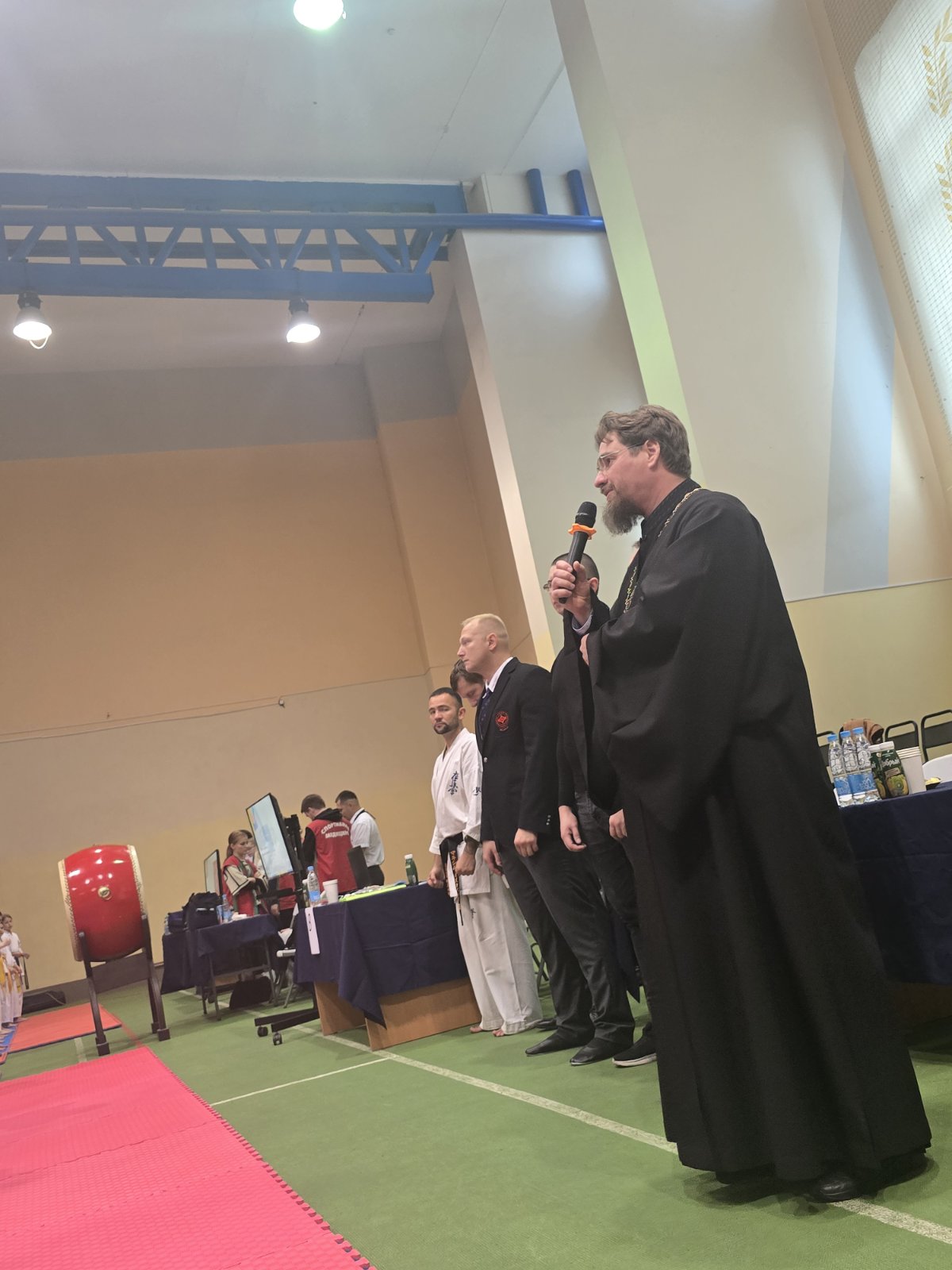 Отец Евгений передал участникам и организаторам турнира благословение на это благое начинание. Подчеркнув, что любое доброе дело, особенно направленное на помощь детям, должно начинаться с обращения к Богу, священник призвал всех к совместной молитве. По его приглашению зал торжественно пропел предначинательную молитву «Царю Небесный», испрашивая у Господа благословения на предстоящие труды.