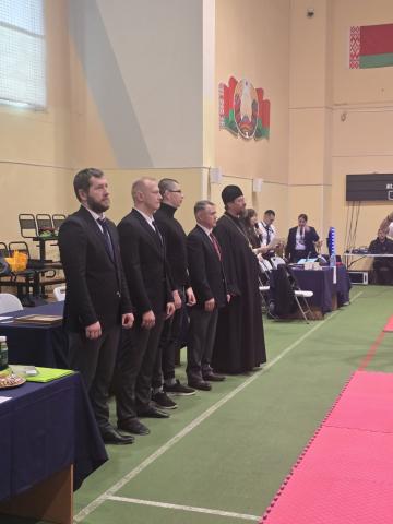 Церемония открытия началась с приветственного слова председателя правления ОО БРФК «ИКО» Василия Викторовича Максимова. Затем право обратиться к собравшимся было предоставлено ключарю архиерейского подворья прихода храма Собора Белорусских святых иерею Евгению Ковалю.