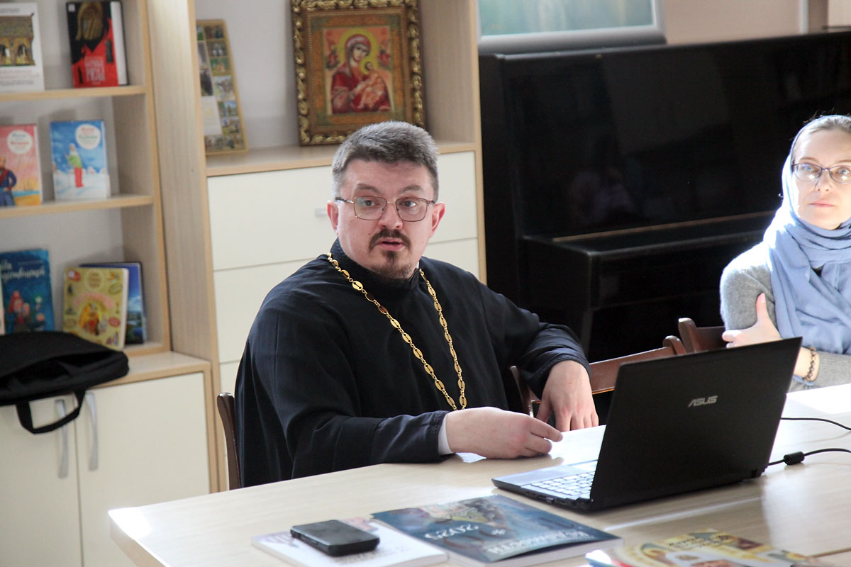 8 марта в церковно-приходской библиотеке возобновились встречи из цикла «Читаем вместе». Гостем стал заведующий церковно-историческим кабинетом Гродненской епархии, клирик кафедрального собора Покрова Пресвятой Богородицы г.Гродно иерей Илия Перченко.