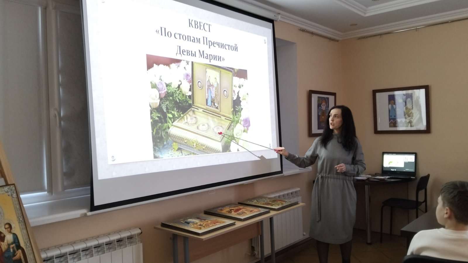 В 4-5 классах в связи с тем, что ребятам уже неоднократно рассказывалось о Пречистой Деве Марии и её праведных родителях, после введения в тему и экспресс-повторения прошел квест «По стопам Пречистой Девы Марии». В игре участвовали 3 команды. Ребятам было предложено пройти 6 станций. На каждой станции ожидало непростое задание, за выполнение которого, команда получала фрагмент изображения принесённого ковчега со святынями.