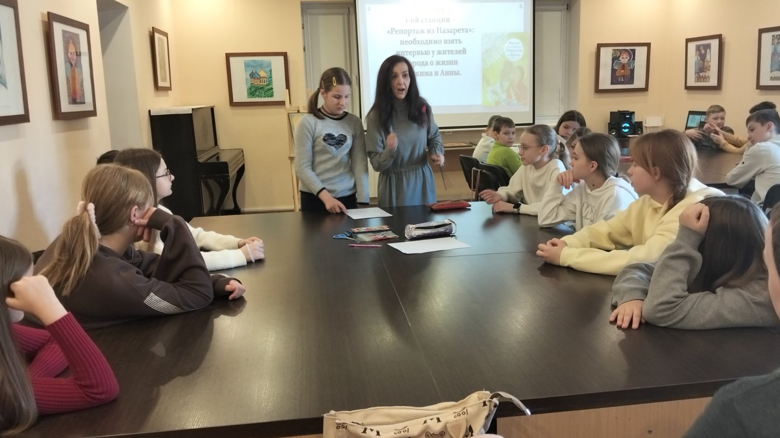 На 1-й станции «Начало: Рождество и введение во храм Пресвятой Богородицы» необходимо было провести «Репортаж из Назарета» и узнать у жителей города об Иоакиме и Анне. Непросто ребятам далось это задание. Не смотря на активное предварительное обсуждение в командах, выбранные «корреспонденты» выглядели неуверенно. Не хватило умения чётко формулировать вопрос.