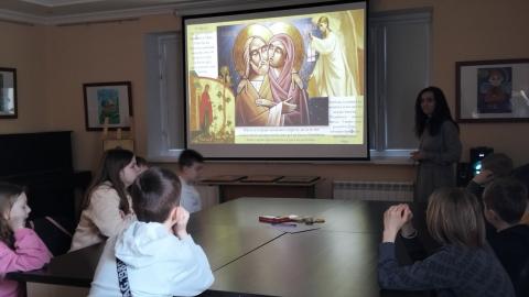 Учащиеся 1-3 классов познакомились с земной жизнью Пречистой Девы, с Её праведными родителями Иоакимом и Анной, с некоторыми Богородичными иконами, с уделами Царицы Небесной и с историей Пояса Пресвятой Богородицы. Для вовлечения учащихся в беседу была использована красочная презентация, на закрепление материала – игра «Символ», согласно которой, ребята по данному символу должны были определить событие из земной жизни Пресвятой Богородицы.