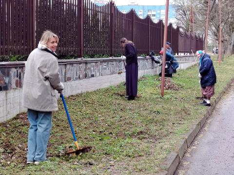 17 апреля, в пятницу Светлой седмицы, после Божественной литургии наши прихожане вышли на субботник, чтобы привести в порядок территорию вдоль церковного ограждения. Основная работа заключалась в уборке опавшей листвы и сухих веток.